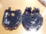 I was intending to replace the LEDs in the mouse (blue is such an ugly colour for LEDs) but it appears that the one on the mainboard is a red/blue bi-colour LED and the one in the scroll wheel is encased in plastic which has the end post melted in lieu of a screw.
