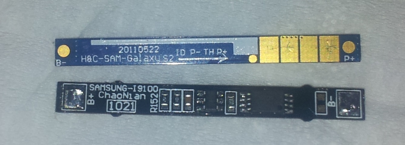 2014-01-01 05.21.29 Published January 2, 2014 at 1337 × 481 in Skin-Deep Authenticity: Tearing down a “genuine fake” Samsung Galaxy S II battery Both of them mention that it’s a Samsung Galaxy S II replacement board. At least the fake one had the courtesy of labeling the pinouts…