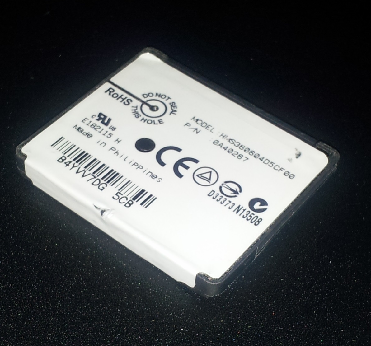 2014-04-11 01.14.29 Published April 15, 2014 at 1192 × 1112 in (Part 1 of 2) Microdrive Adventures: Looking into (and butchering) the Hitachi Microdrive and Seagate ST1 CompactFlash hard drives Microdrive back labeling – note the smudged-out Apple logo on the top right… all that’s left is the (R) symbol