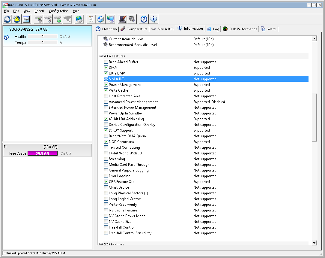 ss (2015-05-02 at 02.29.29) Published May 2, 2015 at 1084 × 859 in Review of SanDisk Extreme CompactFlash 32GB (SDCFXS-032G) HDS info 3/3 (S.M.A.R.T. unavailable)