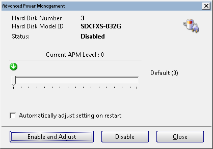 ss (2015-05-02 at 02.30.11) Published May 2, 2015 at 418 × 294 in Review of SanDisk Extreme CompactFlash 32GB (SDCFXS-032G) APM dialog in Hard Disk Sentinel