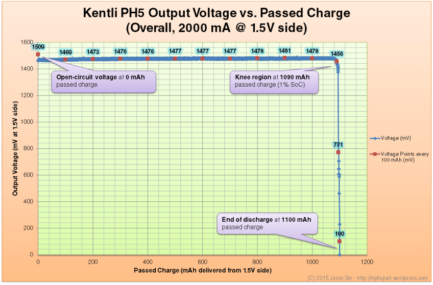 ph5 voltage vs passed charge overall Published June 17, 2015 at 1106 × 730 in Performance analysis/review of Kentli PH5 Li-ion 1.5V AA battery