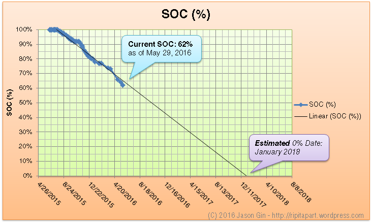 may 29 2016 soc Published May 29, 2016 at 732 × 439 in Self-discharge test of Kentli PH5 1.5V Li-ion AA (Part 4) Kentli PH5 State of Charge (Jun 18 2015 – May 29 2016)