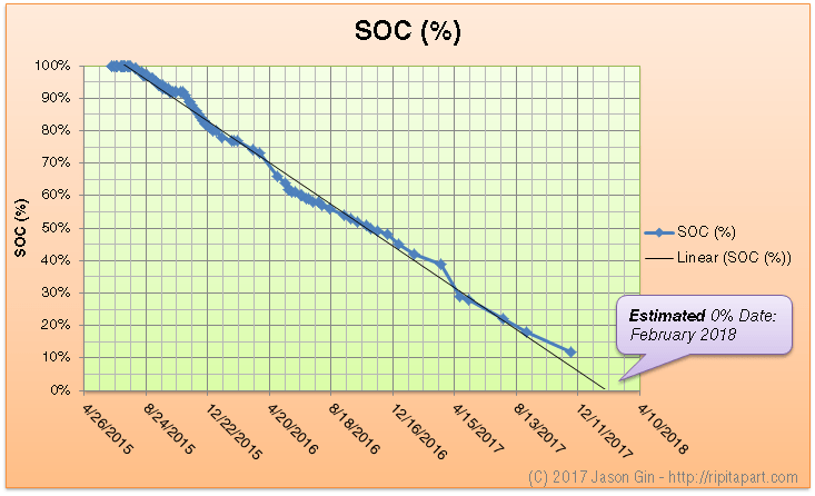 november 28 2017 soc Published November 28, 2017 at 733 × 446 in Self-discharge test of Kentli PH5 1.5V Li-ion AA (Part 5) Kentli PH5 State of Charge (Jun 18, 2015 – November 28, 2017)