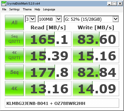 ss (2018-10-28 at 02.50.52) Published November 6, 2018 at 406 × 364 in eMMC Adventures, Episode 3: Building a custom adapter to use cheap eMMC-based 32GB SSD modules Benchmark of Samsung KLMBG2JENB-B041 eMMC 5.1 in CrystalDiskMark