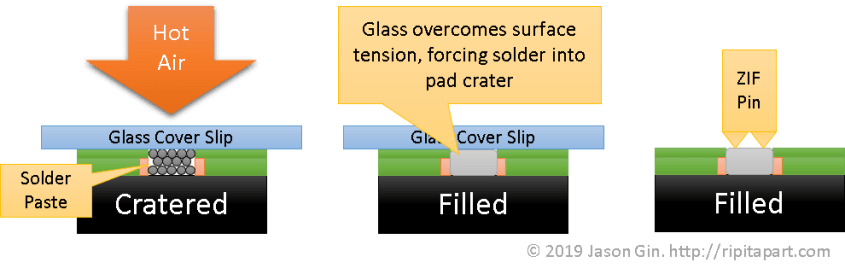 bga pad filled diagram Published January 22, 2019 at 990 × 321 in eMMC Adventures, Episode 4: Recovering data from physically damaged BGA eMMC Flash storage chips Diagram of how the glass cover slip keeps solder paste in place to restore pad contact