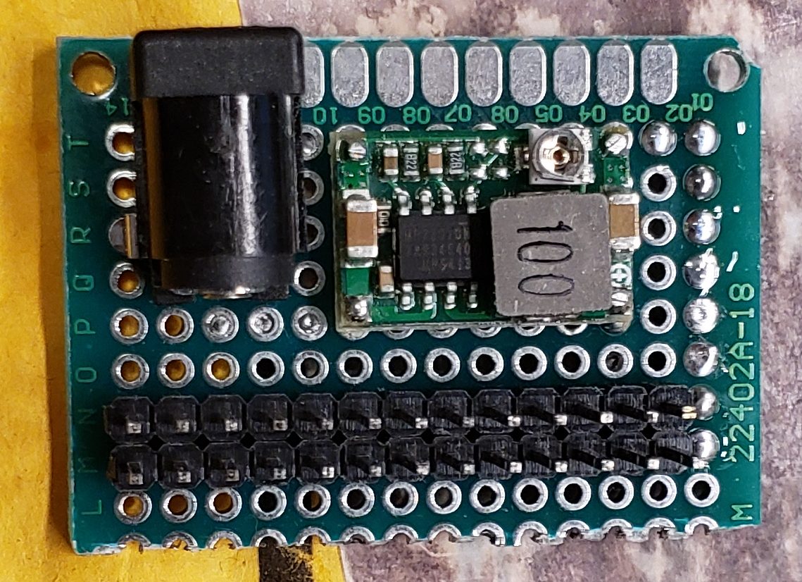 DIY Atomic Pi Power Connector Published June 25, 2019 at 1139 × 826 in Atomic Pi Adventures, Episode 1: Adding external PCI Express expansion by removing onboard Ethernet My own DC input board for the Atomic Pi. 12-volt barrel jack input is converted to 5 volts with a DC-DC converter module.