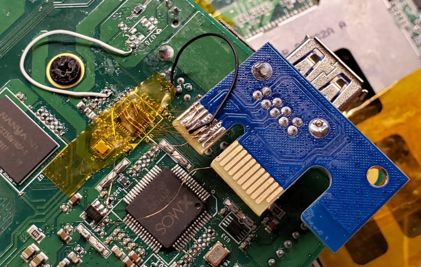 Atomic Pi External PCIe Attempt 1 Published June 25, 2019 at 1915 × 1219 in Atomic Pi Adventures, Episode 1: Adding external PCI Express expansion by removing onboard Ethernet First attempt to get external PCIe on the Atomic Pi, using magnet wire. White wire ties ISOLATEB low, disabling the Ethernet chip.