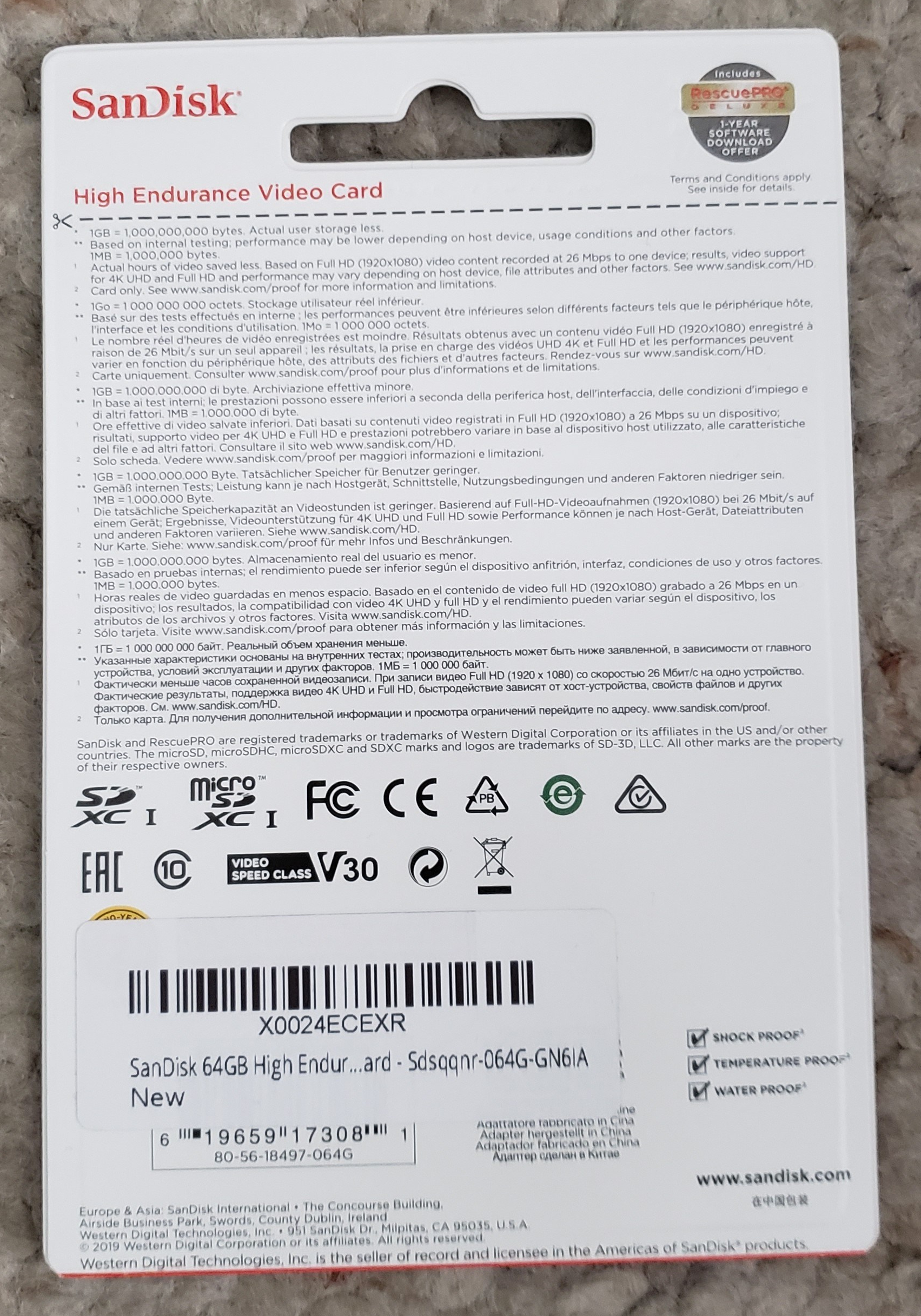 SanDisk High Endurance Card Back Published August 17, 2019 at 1703 × 2435 in Unboxing and review of SanDisk 64GB microSDXC High Endurance Card