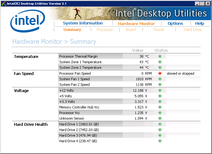 Tachometer Signal Missing Published October 15, 2019 at 684 × 497 in Quick Hack: Converting a computer fan from thermostatic to PWM control Intel Desktop Utilities reporting that the fan I installed was slowed or stopped, as the tachometer signal was absent. Oops.