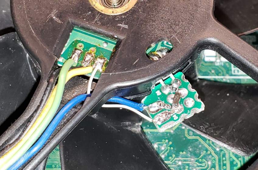 PWM Fan Mod Installed Published October 15, 2019 at 1612 × 1066 in PWM Fan Mod Installed PWM fan mod circuit installed, replacing the original thermistor.