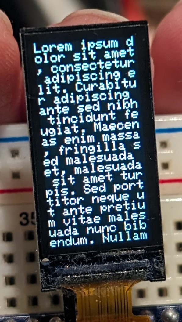 ST7735S with Lipsum Published April 20, 2024 at 597 × 1055 in Dispo Adventures, Episode 1: Reverse-engineering and “running Windows 95” on a disposable vape with a colour LCD screen The classic “lorem ipsum” sample text on the LCD from the Kraze HD7K vape. The classic “lorem ipsum” sample text on the LCD from the Kraze HD7K vape.
