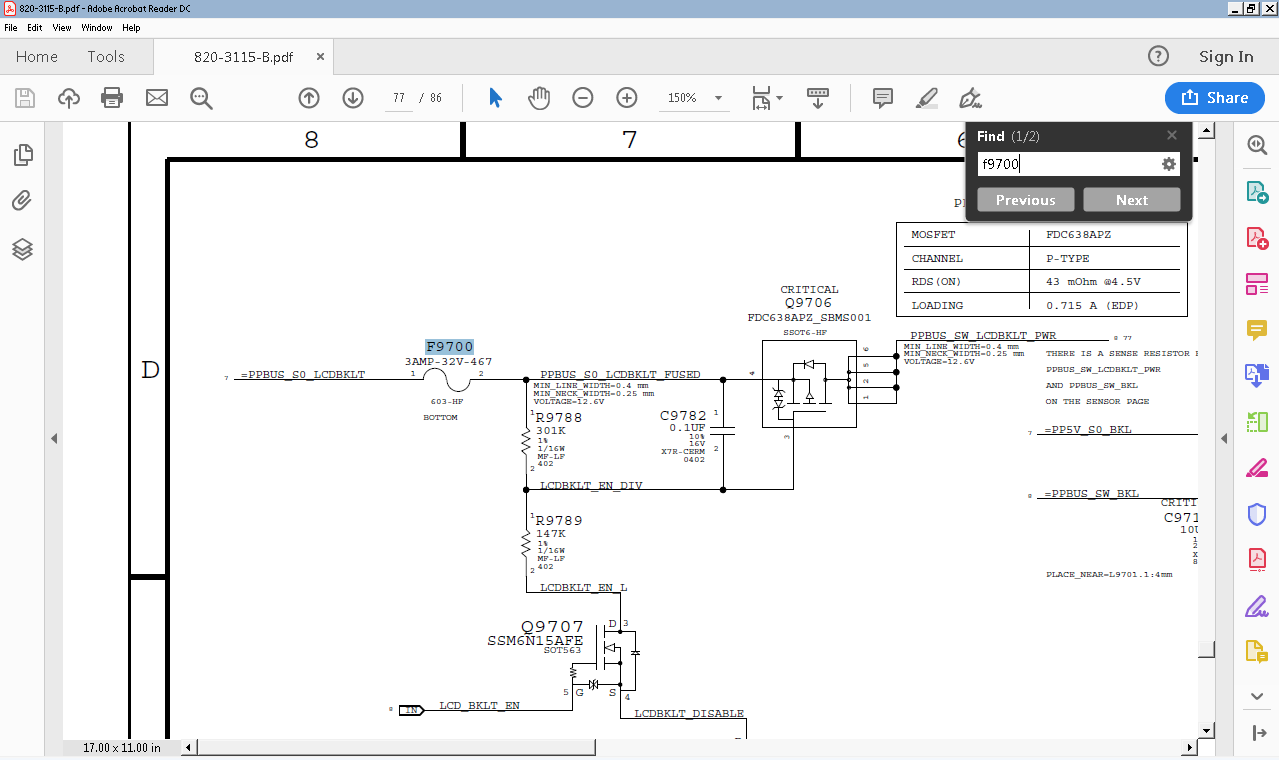 827-3115-b schematic Published July 5, 2019 at 1279 × 760 in 827-3115-b schematic F9700 (backlight fuse) as shown in the schematic, which can be looked up in the board view.